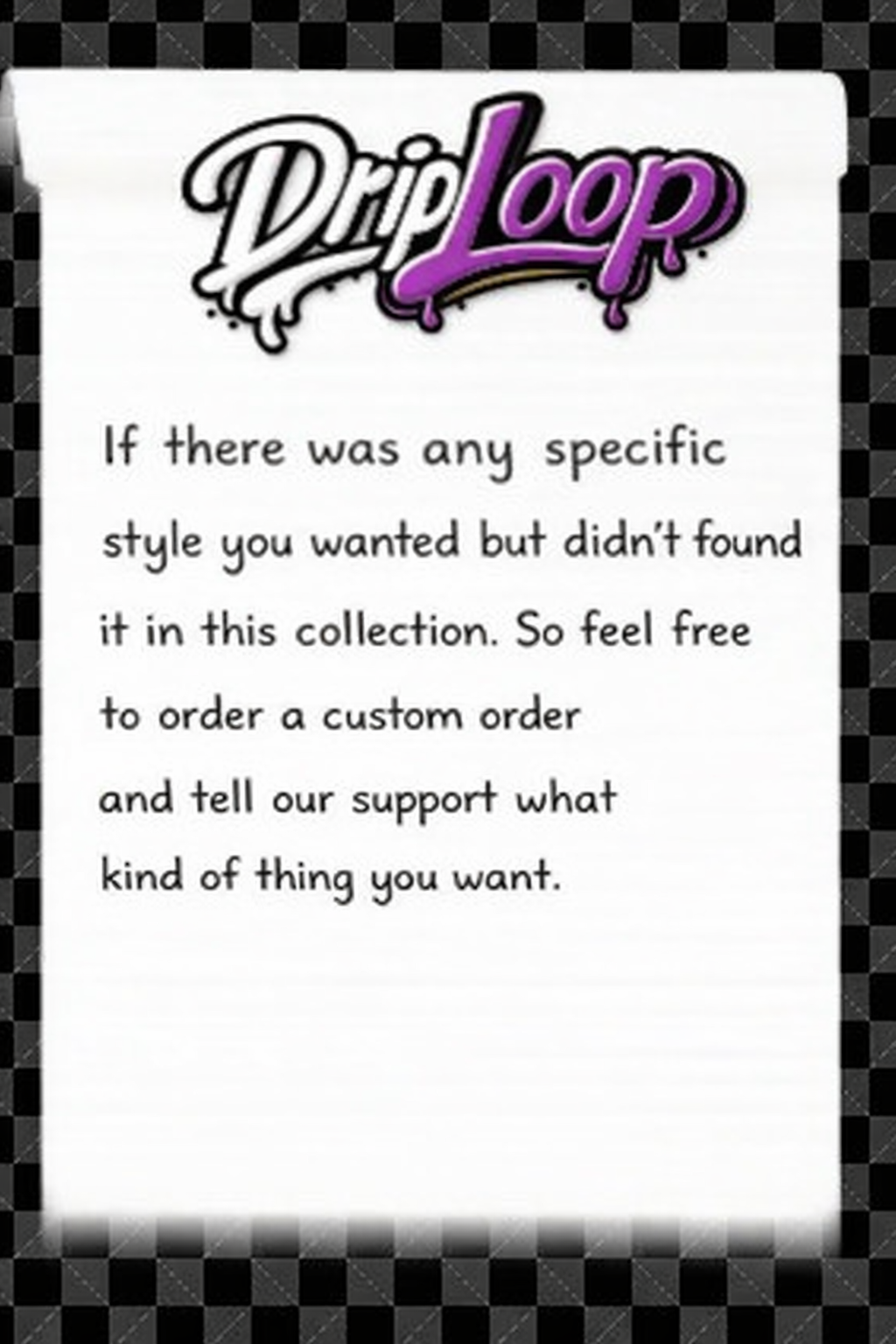 If you’re interested in additional designs, feel free to contact us to place a custom order.